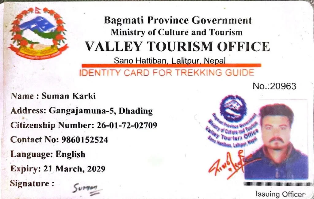 スマン・カルキ氏は、ネパールの多様なトレッキング地域に関する深い知識を持つ、経験豊富で信頼できるトレッキングガイドです。その温かい人柄とサポート精神により、初心者から熟練のトレッカーまで、安心して同行できる頼れる存在です。